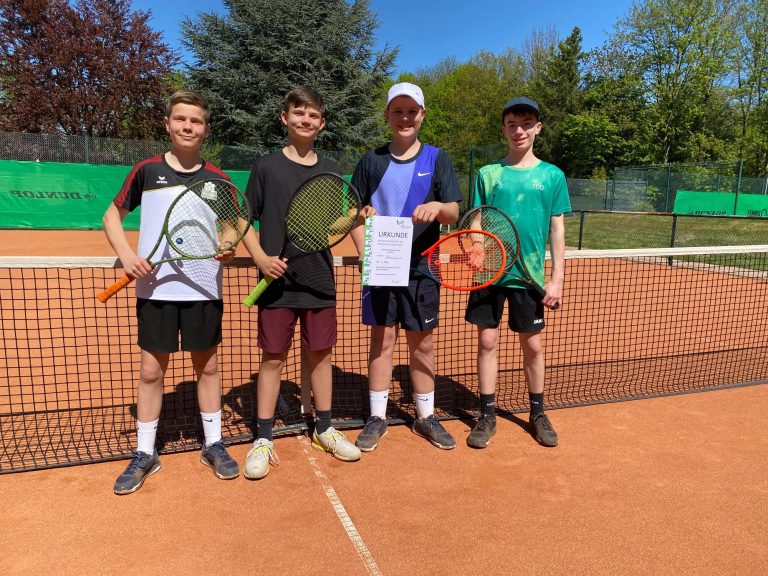 Es ist kaum zu glauben, aber wahr: Das CGD-U16-Tennisteam der Jungen mit Jonas Wolter, Lukas Abenhardt, Felix Schaaf und Felix Abenhardt hat es tatsächlich am 23.04.2026 auf der Tennisanlage in Recklinghausen beim TC Hohenhorst im Schuljahr 2025/26 geschafft sich den Titel des Kreismeisters deutlich zu sichern.