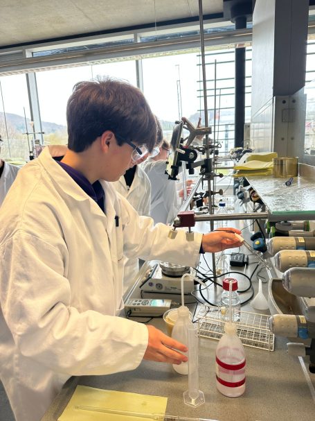 Im Rahmen von drei intensiven Labortagen konnten die Teilnehmenden ihr Wissen durch eigenständige Experimente vertiefen und erweitern. Inhaltliche Schwerpunkte bildeten die Themen Säuren und Basen, Batterien und Akkumulatoren sowie die Kalorimetrie. Neben praktischen Versuchen standen dabei auch die Auswertung und der fachliche Austausch im Fokus.